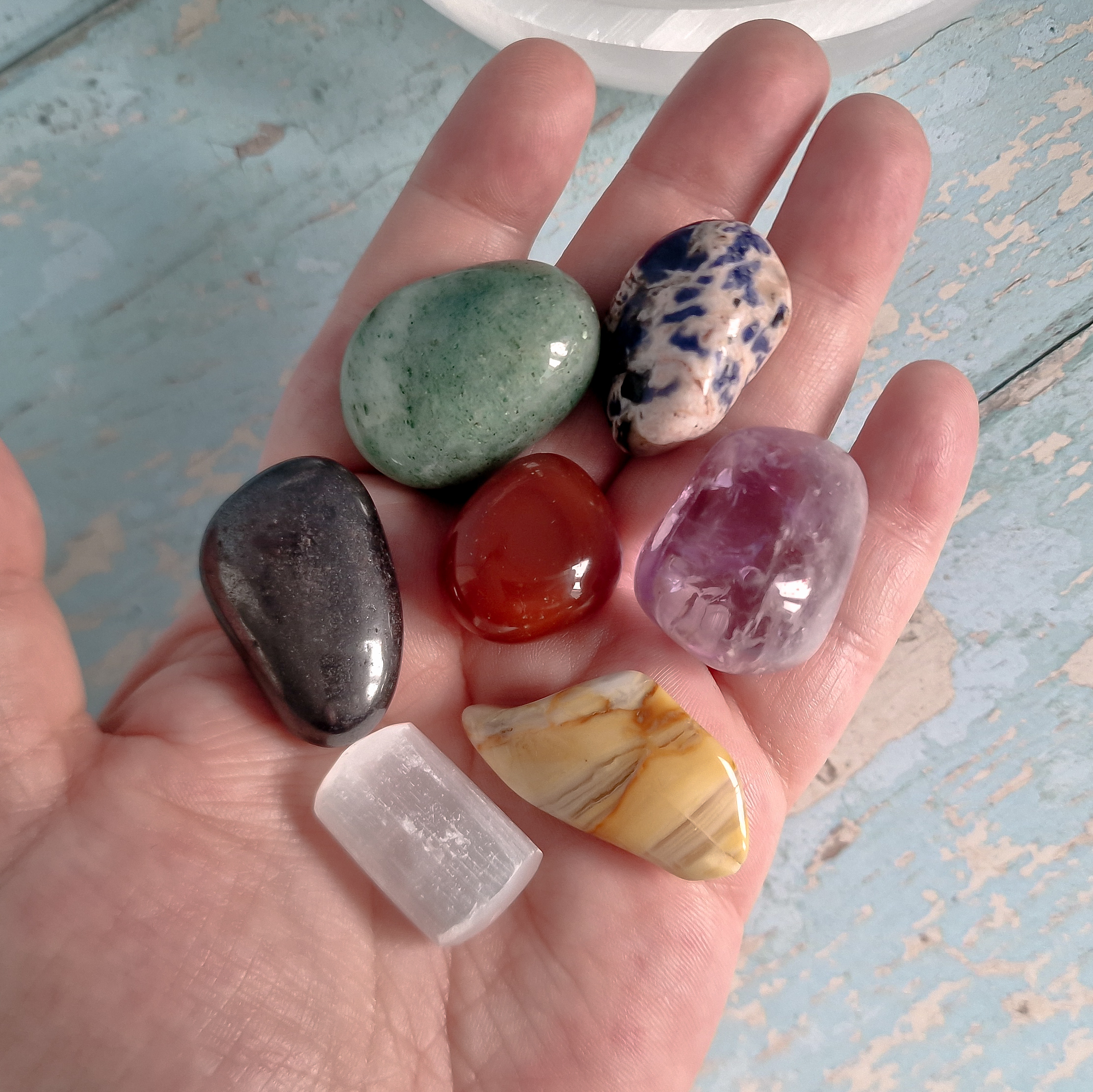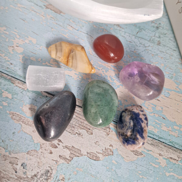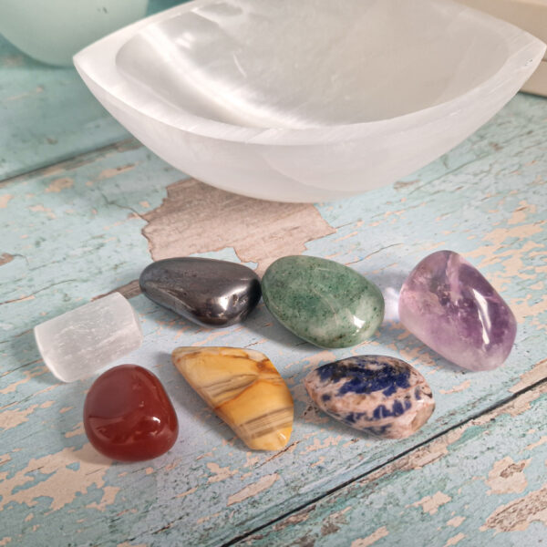 Satin Spar is a wonderful crystal as it has the benefit of being able to cleanse your crystals from all the negativity and bad vibes they’ve absorbed and protected you from, so this makes a perfect addition to your chakra set to ensure your crystals are ready to be used before each chakra healing session.