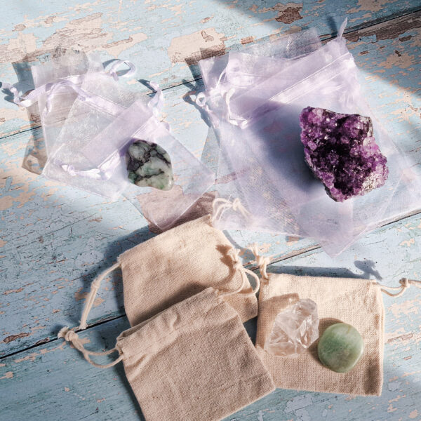 If you’re wanting to store your crystals in something other than the paper bags we send them in, or if the crystals you’re ordering are gifts, then why not add any of our drawstring bags to your order?