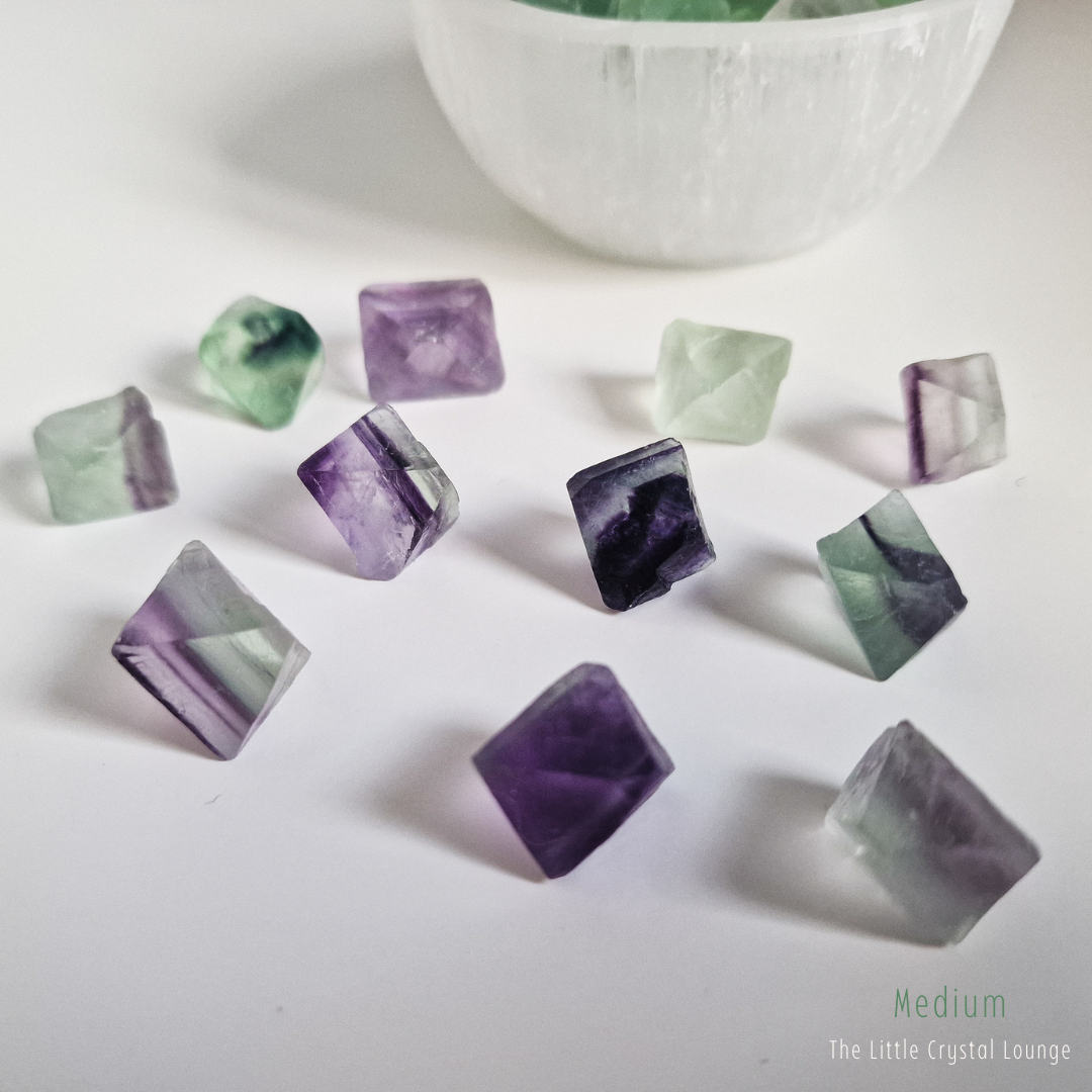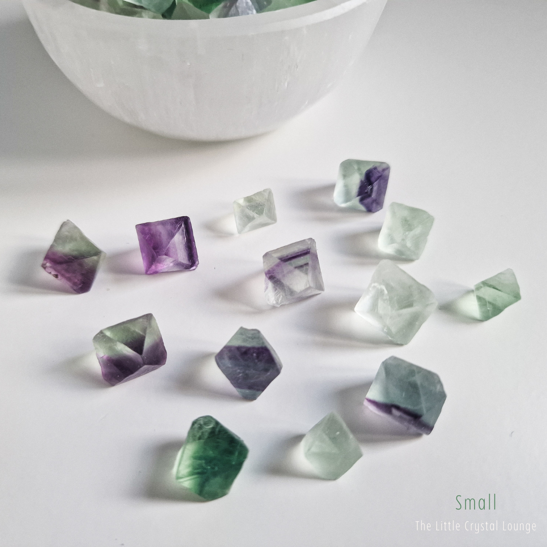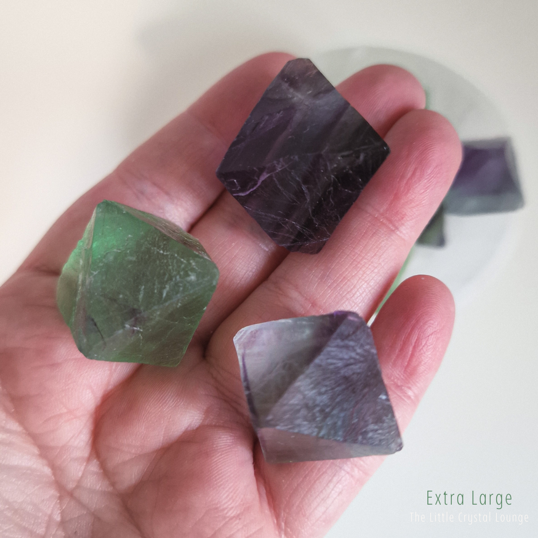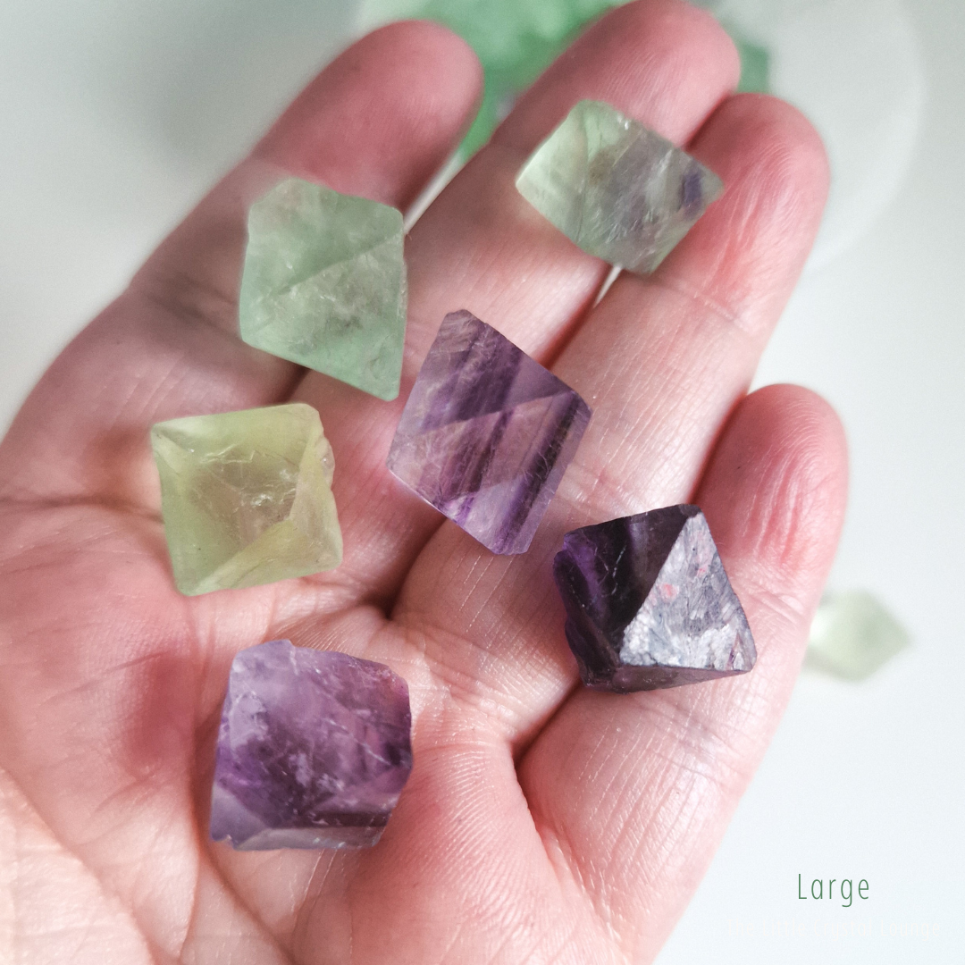 Step into the enchanting world of Fluorite Octahedrons—a shape that feels as magical as its purpose. Unlike smooth, rounded tumbled stones, these geometric treasures showcase a structured elegance, reflecting balance and harmony at their core. Their octahedron shape is said to amplify Fluorite’s natural ability to clear the mind, making it a powerful tool for focus, clarity, and intuitive insight.