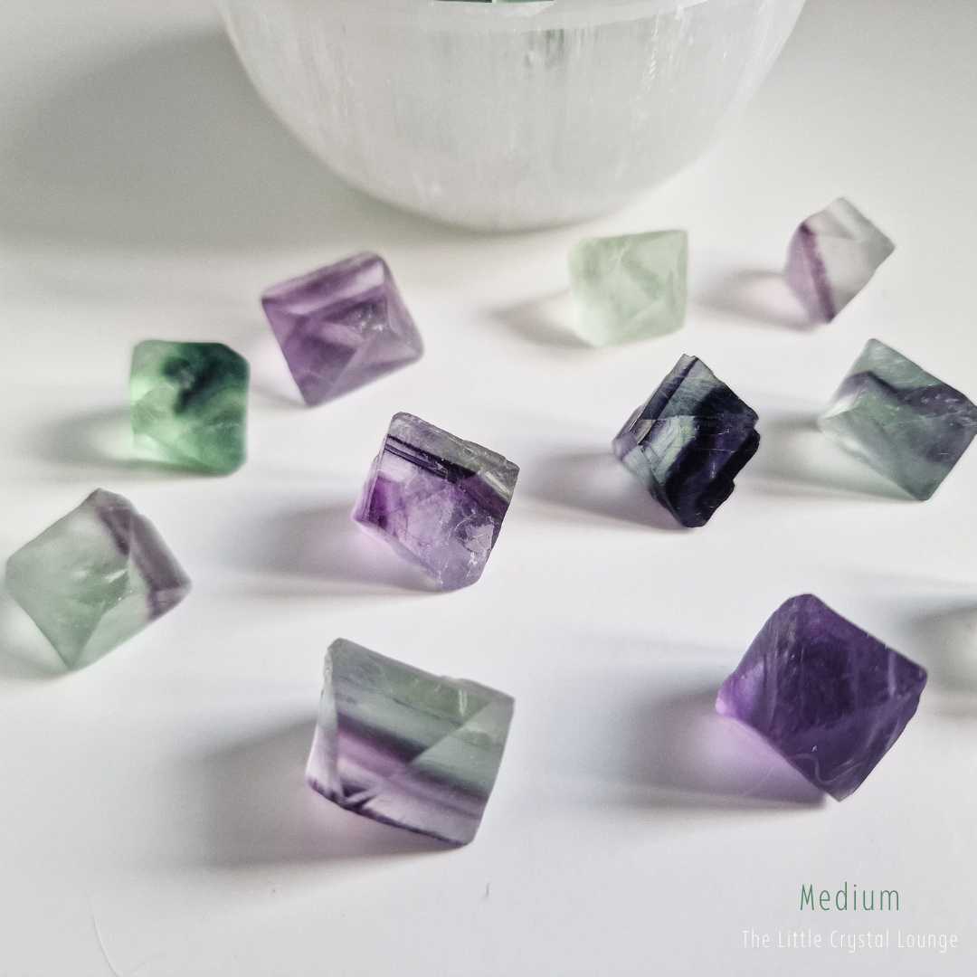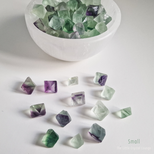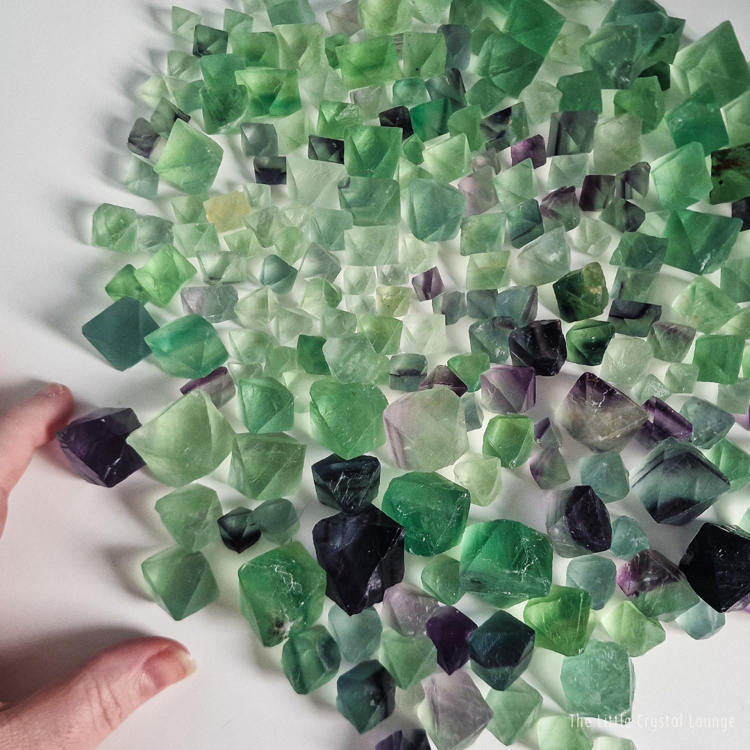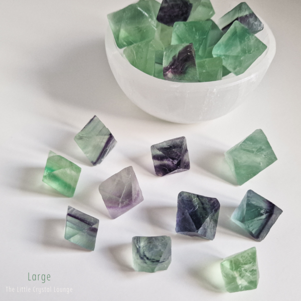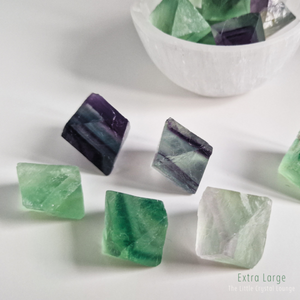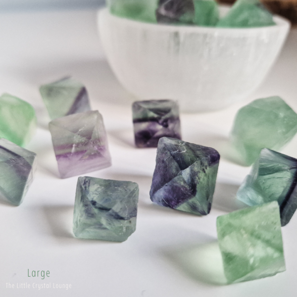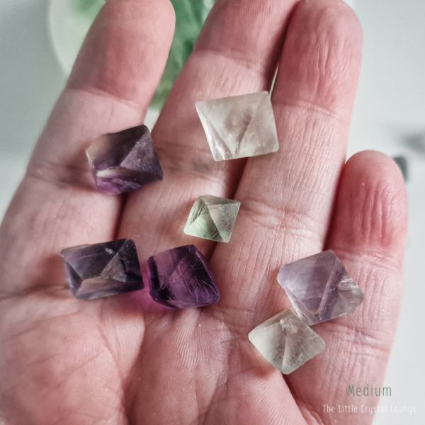 Step into the enchanting world of Fluorite Octahedrons—a shape that feels as magical as its purpose. Unlike smooth, rounded tumbled stones, these geometric treasures showcase a structured elegance, reflecting balance and harmony at their core. Their octahedron shape is said to amplify Fluorite’s natural ability to clear the mind, making it a powerful tool for focus, clarity, and intuitive insight.